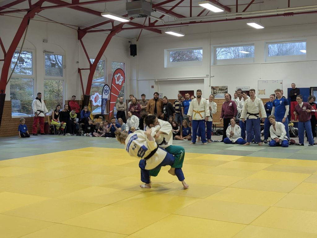 Mit zwei Siegen auf dem Zettel gingen wir selbstbewusst in die letzte Begegnung gegen ersatzgeschwächte Isenbüttler, die zwei Gewichtsklassen nicht besetzten konnten. So gewannen José und Hannah ihre Begegnungen kampflos. Den Auftakt machte Tim, der sich nach Waza-ari Rückstand noch einmal in die Partie zurückkämpfte und nach dem Ausgleich mit Tani-otoshi seinen Gegner mit einem blitzschnellen Seoi-nage auf die Matte warf. Lara erhöhte danach auf 4:0, indem sie ihre Gegnerin im Griff dominierte und ihr 3 Shidos anhängen konnte. Alpha machte in seinem Kampf kurzen Prozess und warf seinen Gegner nach wenigen Sekunden mit Hikikomi-gaeshi auf Ippon. Berit besiegte ihre Gegnerin schnell und routiniert mit Uchi-mata und anschließender Haltetechnik. Technisch und taktisch besonders klug stellte sich Marcel an, der seinen Gegner im Griff komplett dominierte und dann den Übergang vom Boden- zum Standkampf nutze und sein Gegenüber mit Soto-makikomi bezwang. Linus konnte seinen starken Gegner nach Waza-ari-Rückstand noch besiegen, indem er zunächst mit Tani-otoshi und danach mit einer klug eingesetzen Handtechnik zwei Wara-aris erzielte.