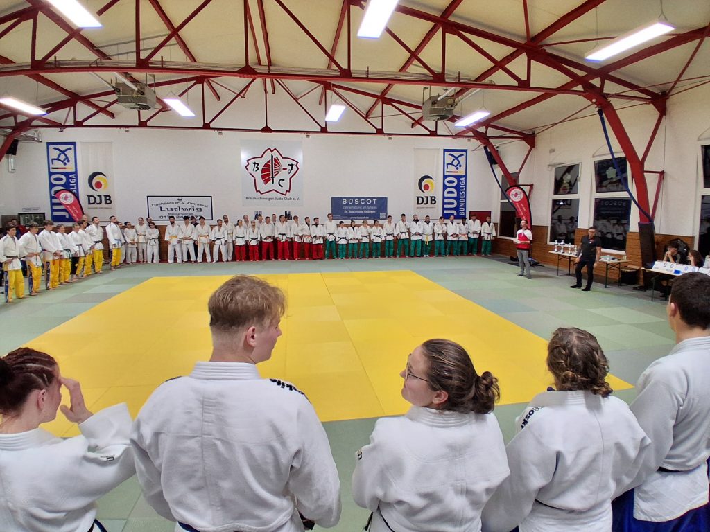 In Braunschweig standen wir gestern mit dem JC Peine, dem ASC Göttingen und dem MTV Isenbüttel drei starken Teams gegenüber. In der Auftaktbegegnung gegen Peine wurde es so auch direkt spannend. Durch Punkte von Lara, Berit, Hannah, Jannik und Marvin konnten wir die Partie knapp mit 5:3 gewinnen.